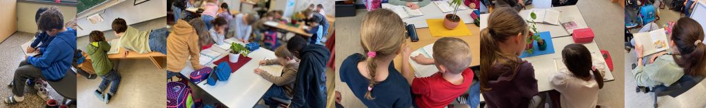 Die Kinder der Klasse 1b bewiesen sich als Frühlingsdetektive und erforschten mit allen Sinnen und Klemmbrettern die Natur, um Spuren des Frühlings aufzudecken. Da nun die Zugvögel wieder aus den Winterquartieren zurückkehren, bastelten die Drachenkinder der 1b bunte Vögel für die Fenster im Schulhaus- der Frühling hält Einzug!