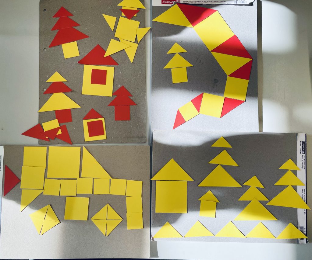Auch in den letzten Wochen es wieder kreativ an der Grundschule Sulzgries und unsere SchülerInnen zeigten sich geschickt. Alle ersten Klassen haben verschiedene geometrische Formen kennengelernt und anschließend spielerisch Fahrzeuge, Landschaften und Tiere mit Legeplättchen gestaltet.