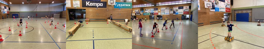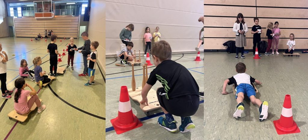 Sportlich wurde es für unsere Erstklässler. Alle SchülerInnen erwerben ihren Rollbrett- Führerschein. Dazu muss an verschiedenen Stationen die „Fahrtüchtigkeit“ unter Beweis gestellt werden. Die Rollbretter sind „psychomotorisch sehr wertvolle“ Sportgeräte und werden daher z.B. bei allen Bewegungslandschaften eingesetzt. Bei der Abnahme der Prüfung in der1 c unterstützten freiwillige nun schon große Helferkinder aus der 3 c.