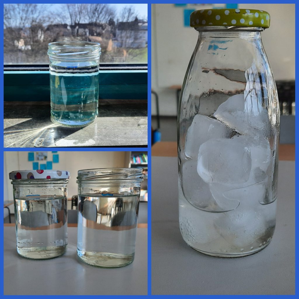 Die Klasse 3c beschäftigt sich im Sachunterricht mit dem Thema Wasser. Dazu beobachten wir in den nächsten Tagen, ob das Wasser aus den Gläsern verschwindet. Außerdem haben uns die Eiswürfel gezeigt, was mit ihnen passiert, wenn sie warm werden. Passend zum Thema “Wasser” im Sachunterricht haben die Kinder der 3c mit Spachteln aus Pappe und den Farben gelb, rot, blau diese Goldfische im Aquarium aufs Papier gebracht.