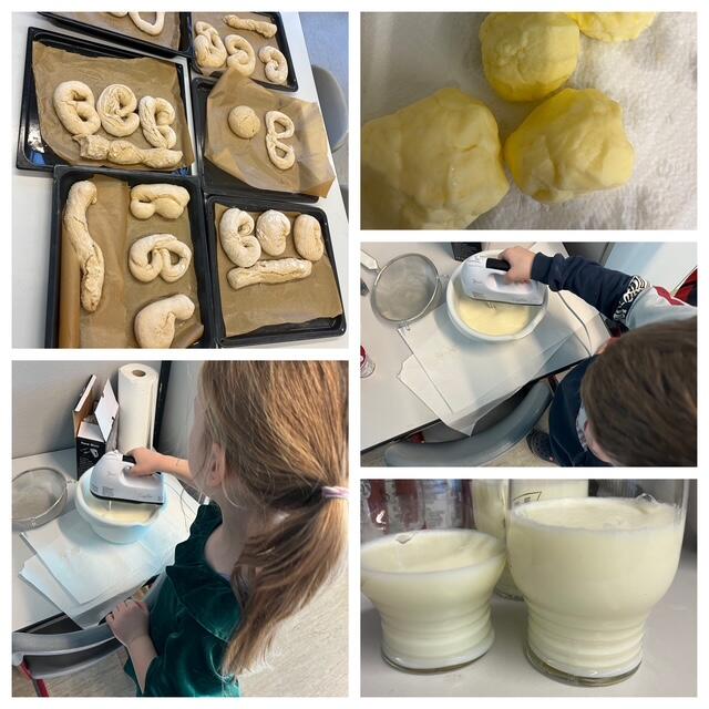 Aber auch der normale Unterrichtsalltag fand seine Berechtigung: Die Klassen 1 lernte viele neue Buchstaben kennen. Zum Buchstaben „B“ hat die Klasse 1b Brot gebacken und frische Butter aus Sahne selbst hergestellt. Weiterhin sammelten die Drachen der 1b erste Erfahrungen mit dem Wasserfarbkasten. Alle SchülerInnen passten gut auf und konnten tolle Ergebnisse erzielen, indem die Farben meisterhaft gut angemischt wurden. Die Arbeitsplatzgestaltung wurde dabei genau erforscht und die Plätze folgerichtig eingerichtet.