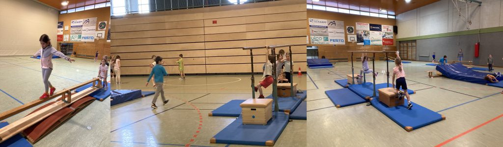 In den vergangenen Wochen haben sich alle Kinder intensiv mit den Großgeräten in der Sporthalle beschäftigt. Wie bauen wir die Geräte auf? Teamarbeit ist gefragt!